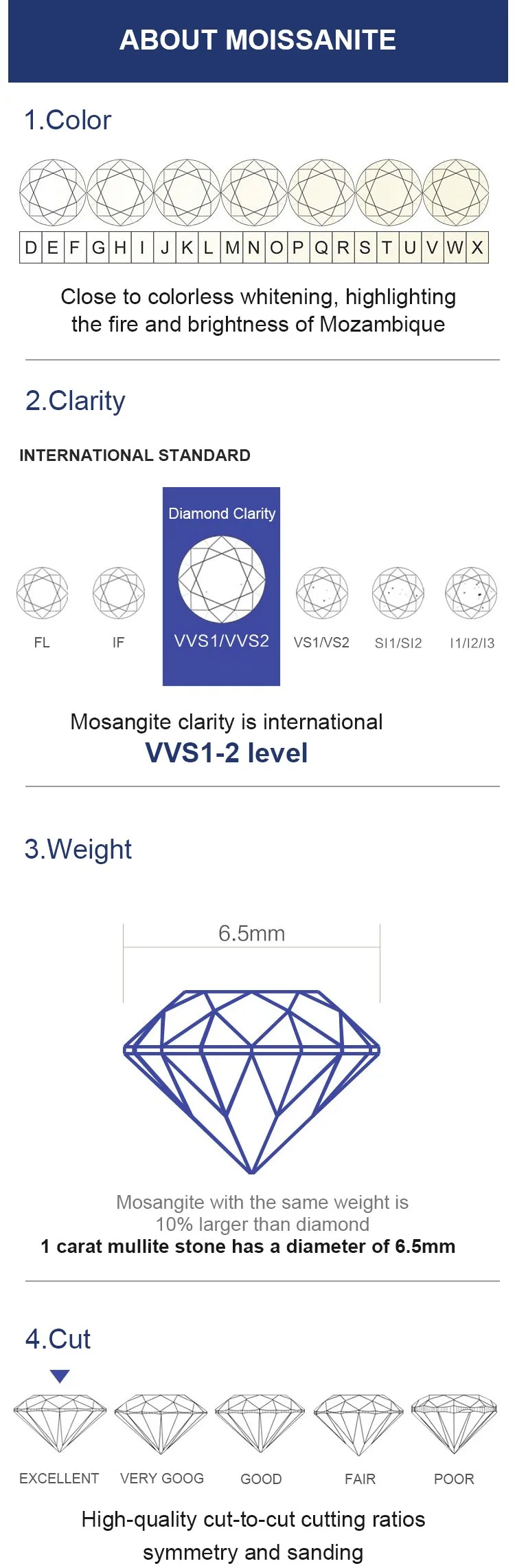 Moissanite Diamond is popular among fashion independent women in Europe, America, Japan, South Korea and other markets, and become their favorite jewelry.