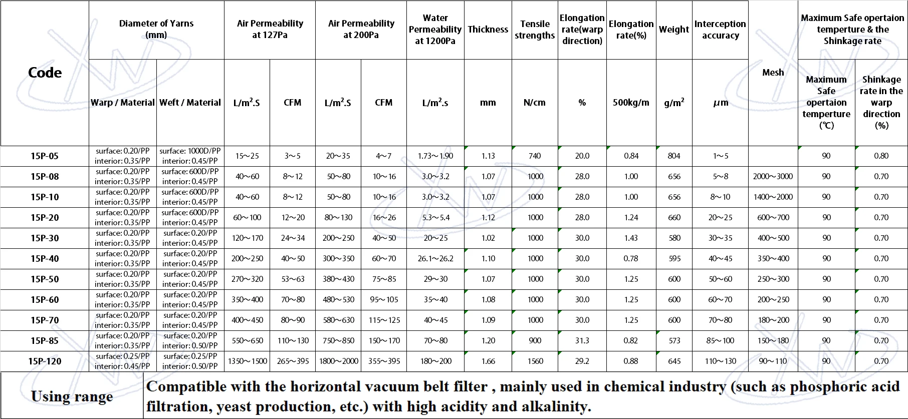 2. Chemical stability: Citius fabrics are acid proof, alkali proof, and anti-corrosive. They also are able to withstand high temperatures.