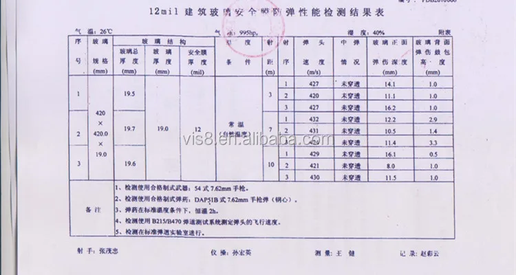 The testing result is translated from China weapons industry bulletproof equipment quality supervision and testing center in Chinese