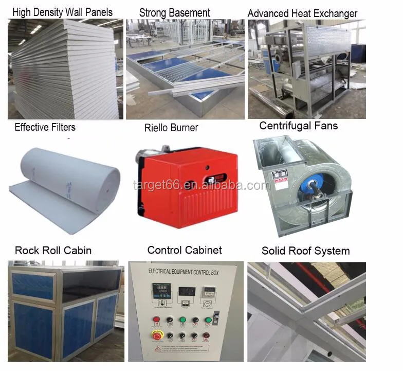Inside dimension (mm) | 6900*3900*2800(LxWxH) | Total Power(Kw) | 16 Kw , Noise < 80db | |||