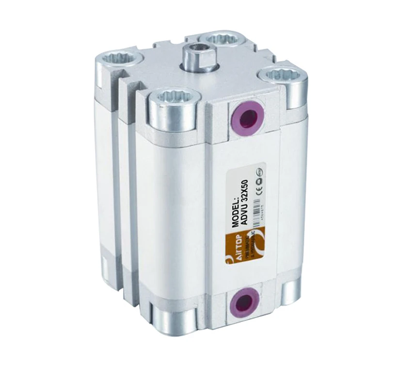 1.The compact structure of ADVU series cylinder can save the mounting space effectively. 2.Bore size ranges from φ12mm to φ100mm. 3.The internal part of the cylinder barrel would be treated with hard anodizing after finish machining, which forms an excellent abrasion resistance and better durability. 4.The magnet switch could be installed directly inside of the slots around the cylinder barrel, with no need of other mounting accessories, which can also protect the magnet switch from damage.