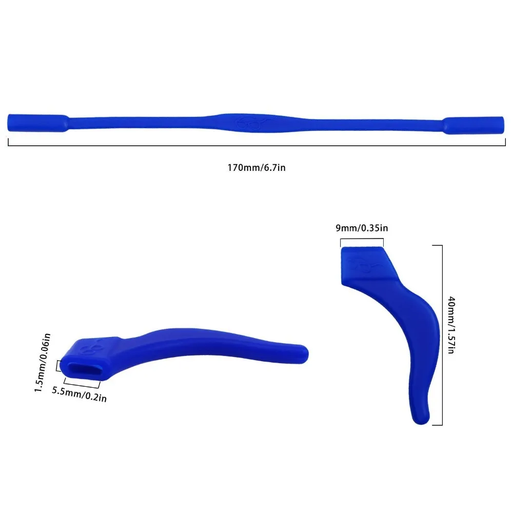 SIZE - (length: 6.7in/17cm) silicone glasses straps and (length: 1.57in/4cm) eyewear retainer, which are suitable for most children's and adult's glasses legs, but not great for thin metal glasses legs