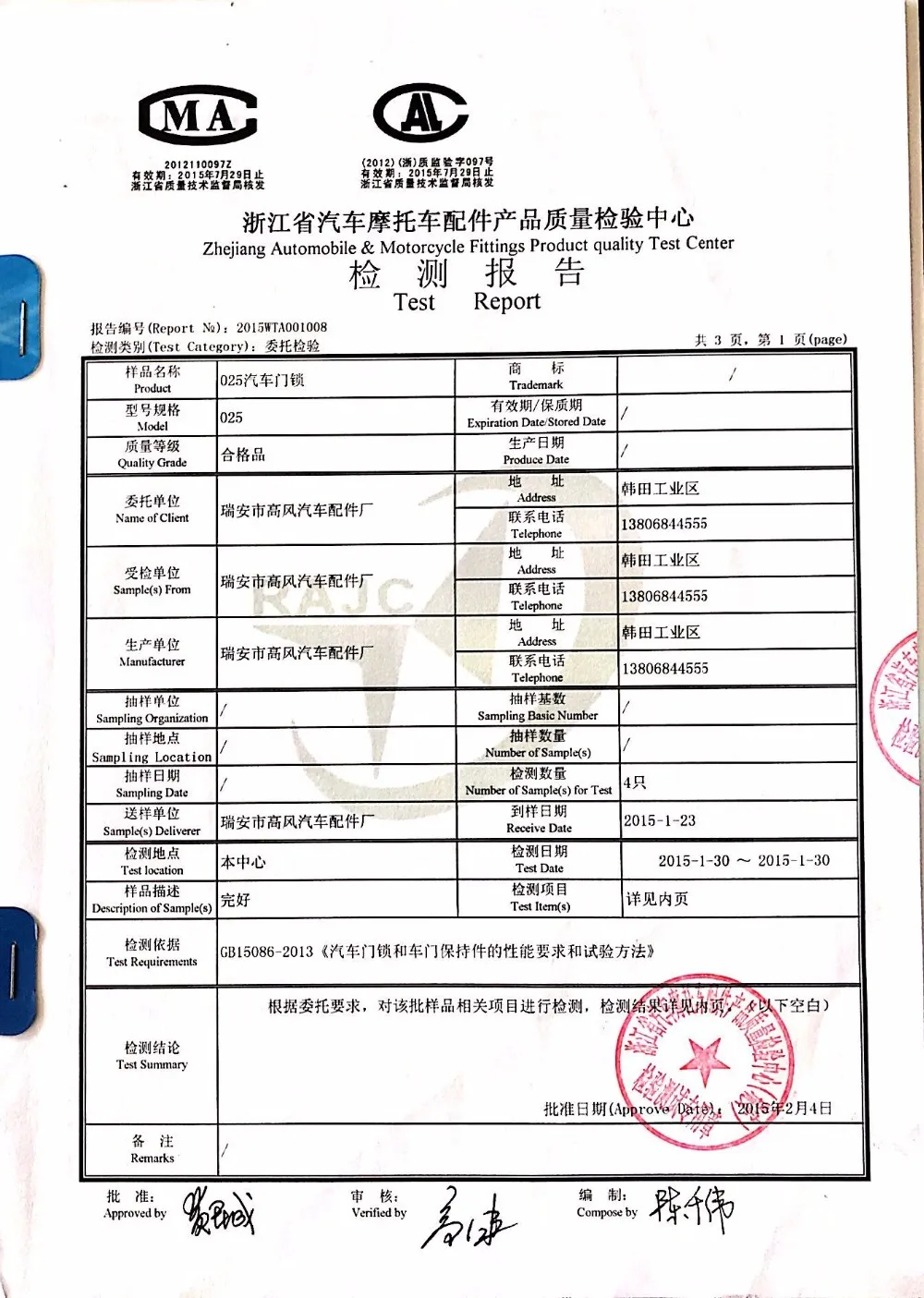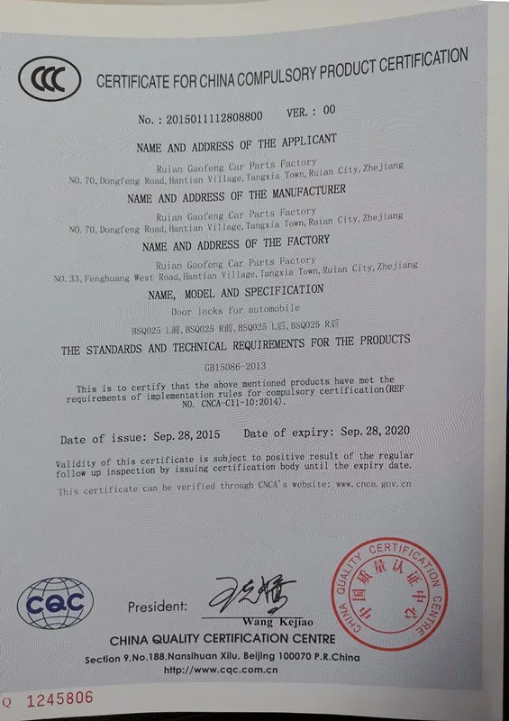Ruian Gleeful Auto Parts Co., Ltd, professional central lock manufacturer founded in 2005, with ISO9001 international quality system certification.