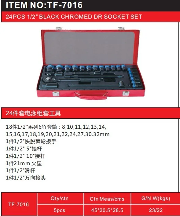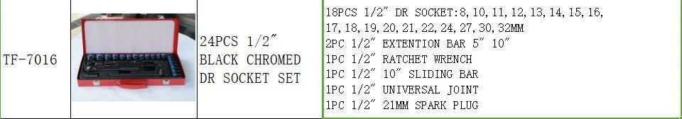 TF-7016   24pcs  BLACK CHROMED 1/2" DR Socket Set