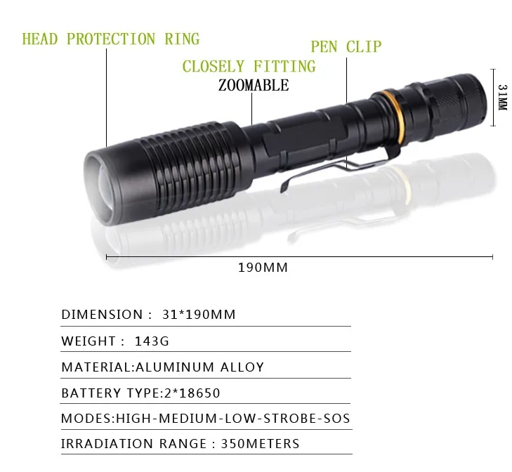 Name | XML-T6 Aluminum waterproof 18650 battery type Tactical torch light |