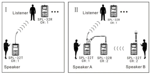 The speakers’ voice is clearly heard by listeners. Receivers’ quantity is unlimited.