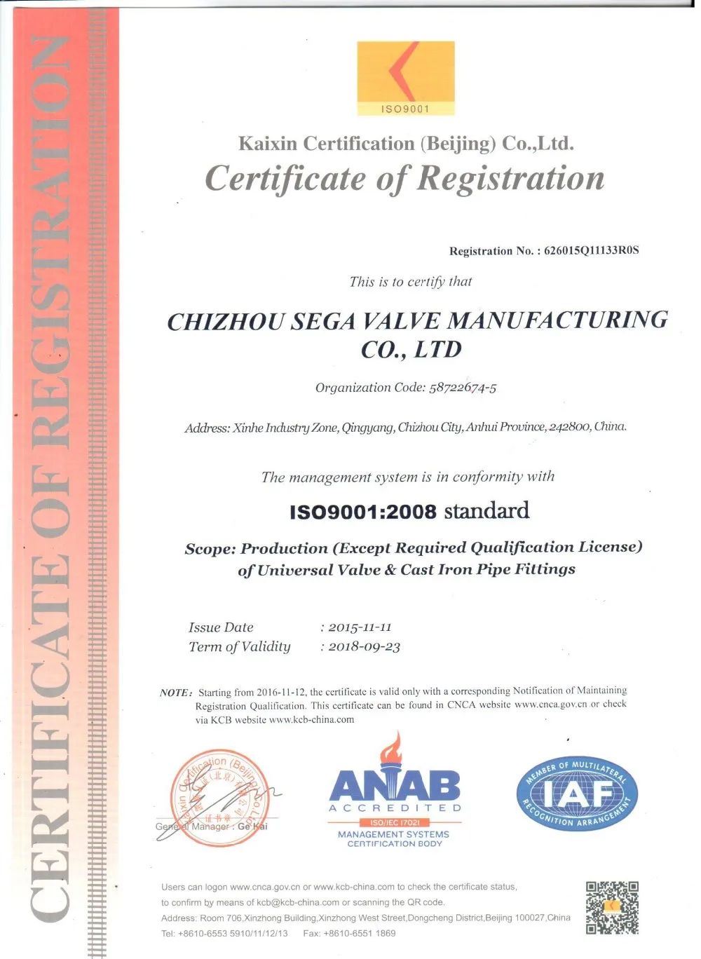 4. Certification: ISO9001, CE