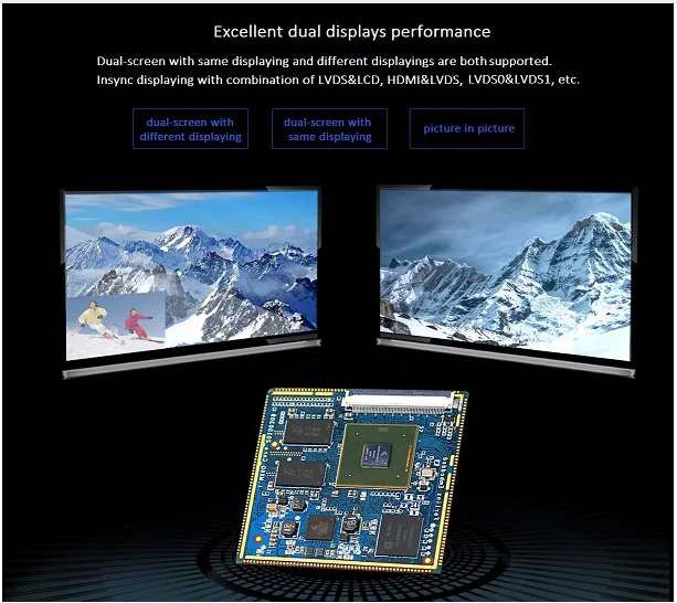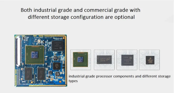 SoM with minimum system and with LCD interface, which is very convenient for usres to do incoming quality control and aging by running the system just with connection of a 4.2V power input but no need support of the carrier board.