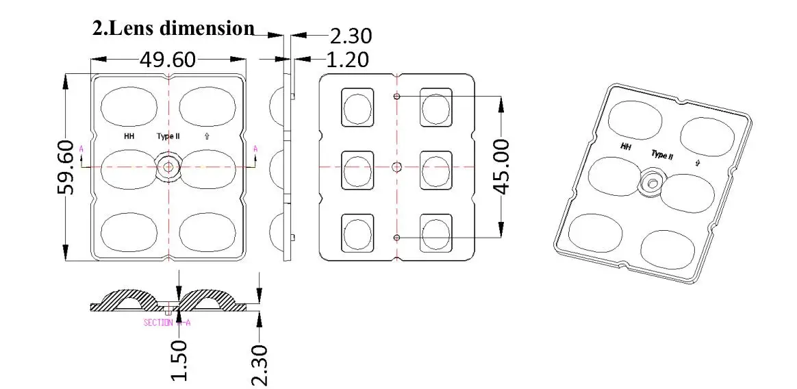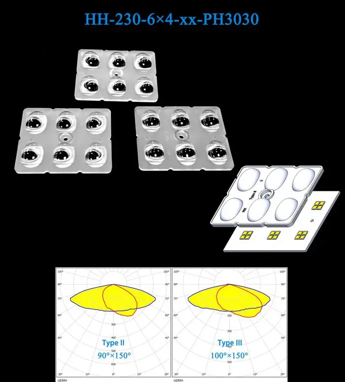 6in1 50x60MM Led Street Light Lens TypeII Beam Angle 3030 Module Parking Lot Light Lens | ||