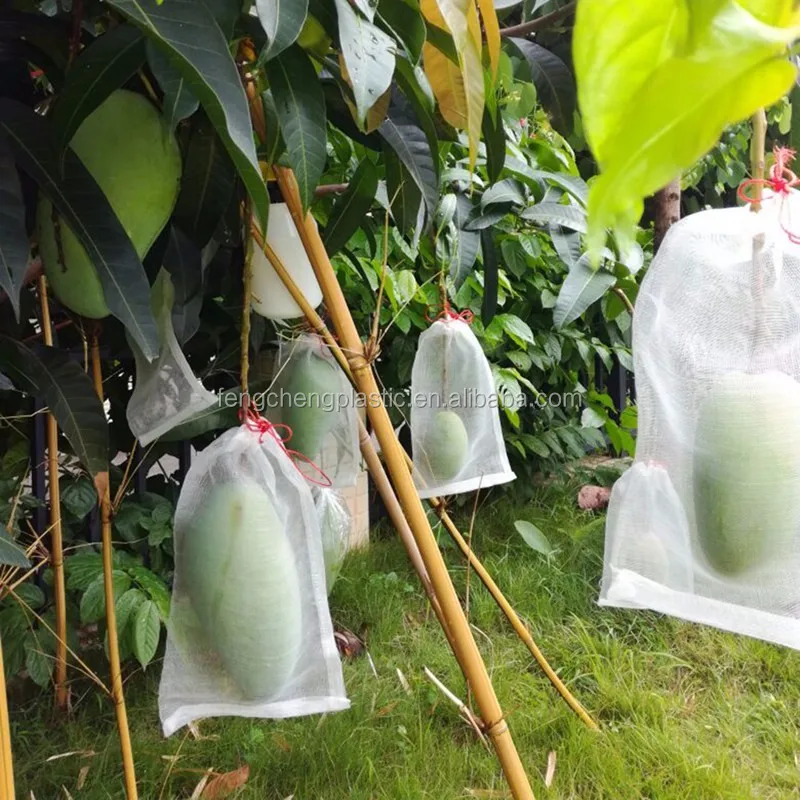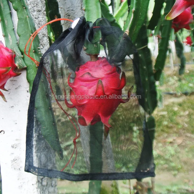 Fruit protection net bag is made of anti insect net with drawstring,used for fruits and vegetables protection,such as mango,dragon fruit,tomato,eggplant,cucumber and so on. Protect fruits and vegetables from penetration of insects,pest,aphids,birds and animals.