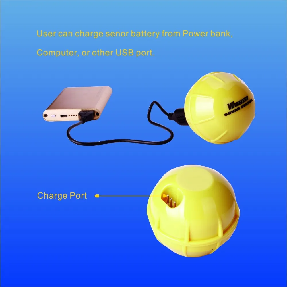 Built-in lithium battery for sonar sensor operation, recharge voltage: 5V