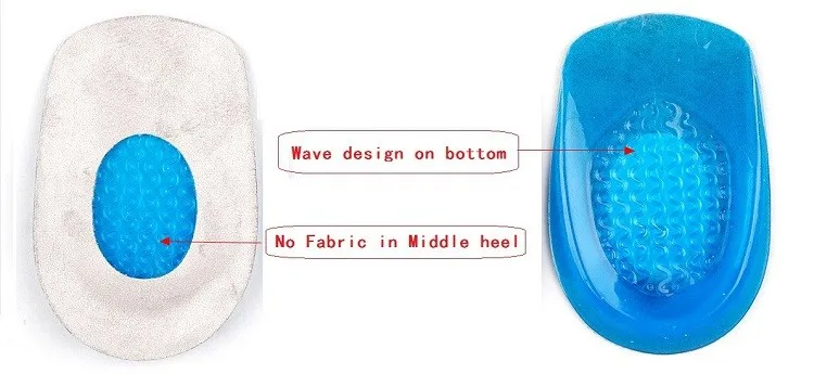 1. Shock absorption, Honeycomb design in heel. 2.Extra cushion of heel and forefoot pad. 3. Heel area support, disperse pressure of heel, reduce heel pain after long time wearing. 4. Cut to fit the foot, by following the cut lines.