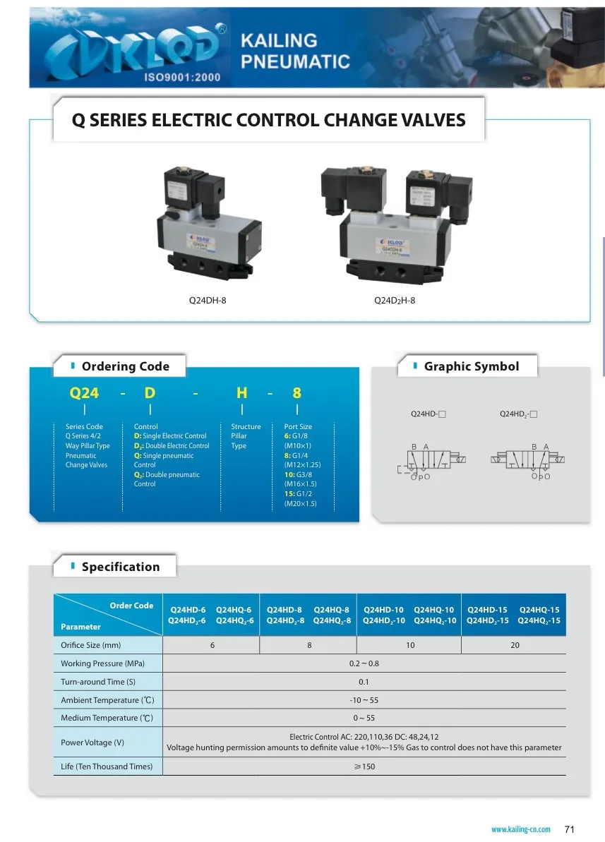 KLQD 4/2 Way Q Series Single Electric Control Change Air Valve