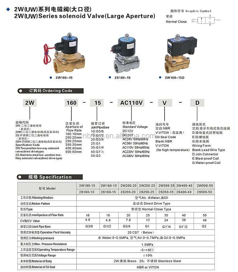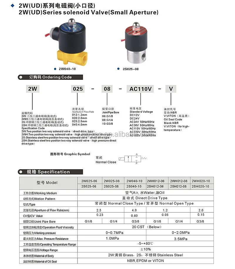 Two position, two way, normal close switch, magnetic solenoid water valve.