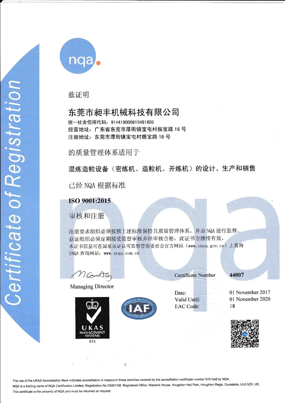 ISO 9001:2015 issued from 2017- 2020 which will last for 3 years!