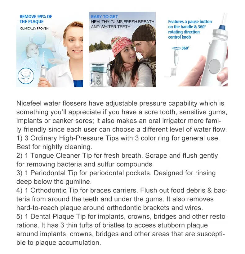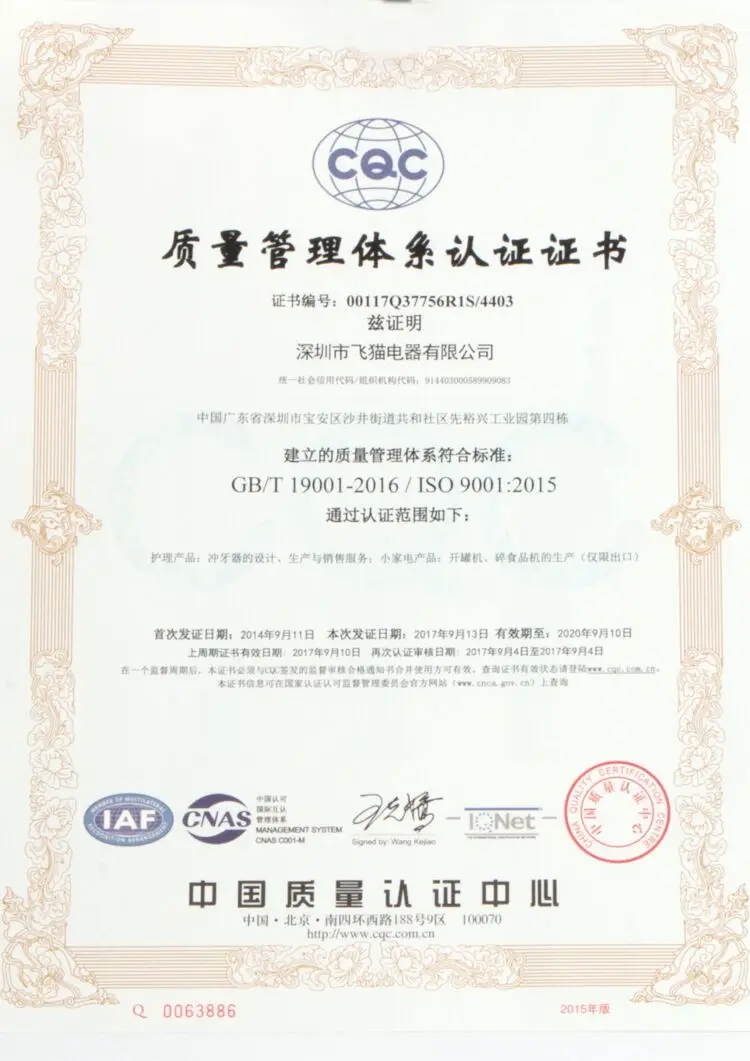 Nicefeel is dedicated to Personal Care Products: Oral Irrigator, Nasal Irrigator and so on. Our company has passed the ISO9001:2015 Quality Management System Certification,passed the ISO 13485:2016 Medical Device Quality Management System Certification, and obtained a Medical Device Registration Certificate. Our Company's product have passed RoHS,UL,CE,CQC,IPX7, Microbiological Testing and other tests and certifications conducted by professional and authoritative institutions.