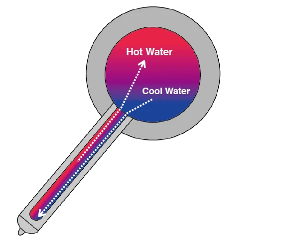 • As the water heats up it rises back up into the tank, gradually heating the tank throughout the day.