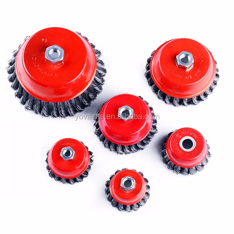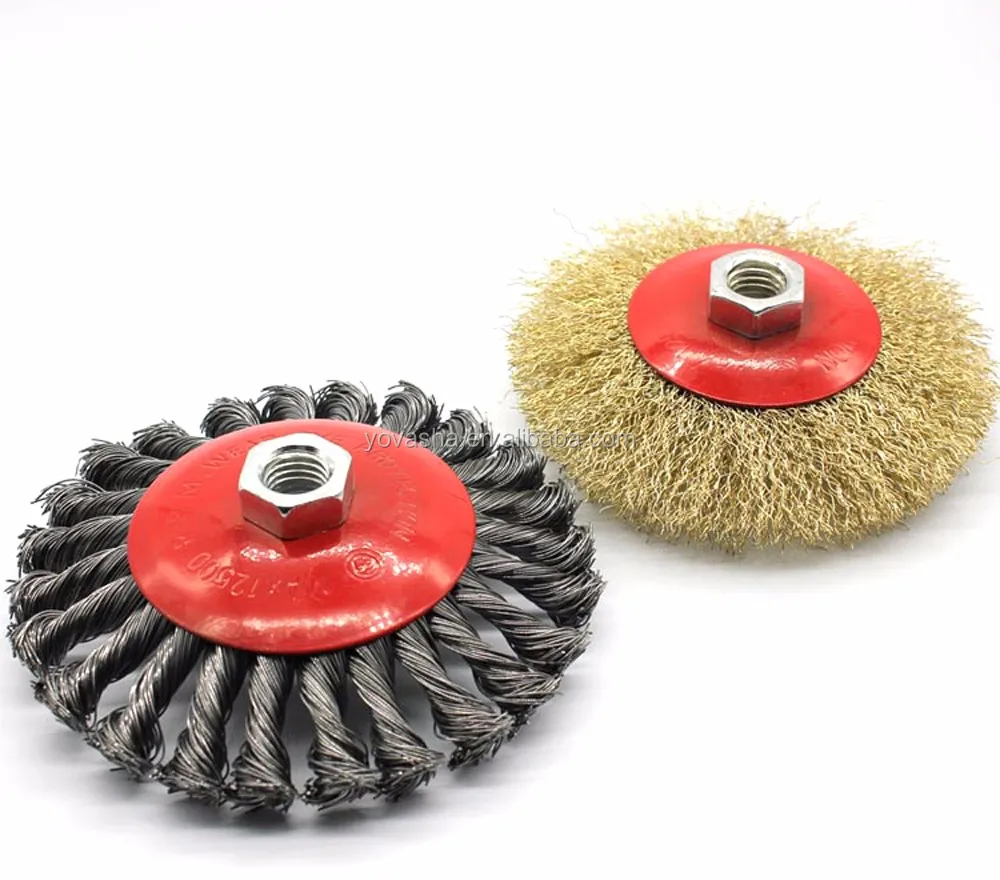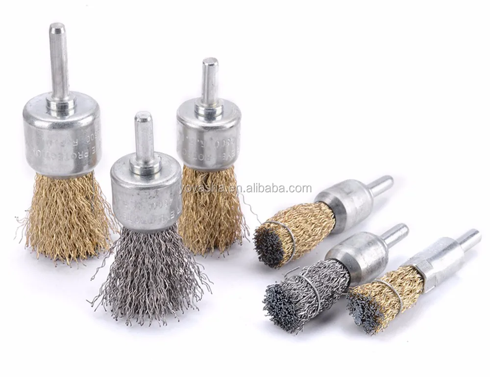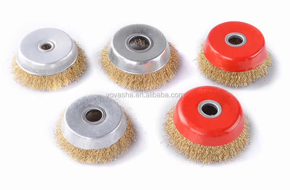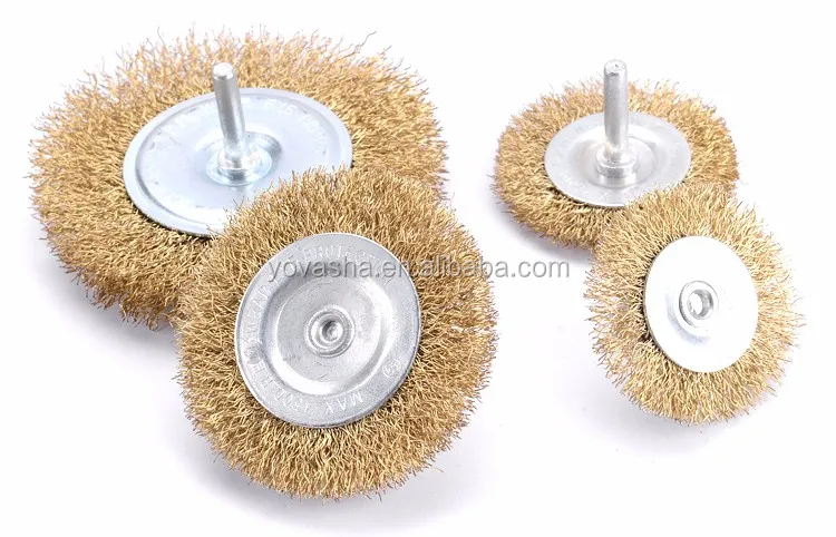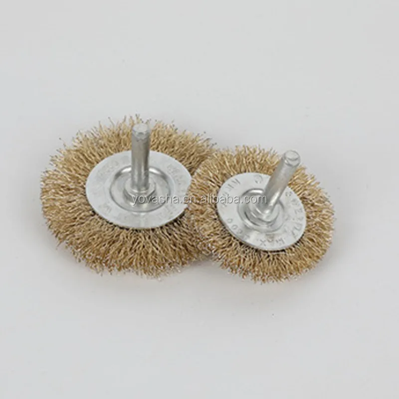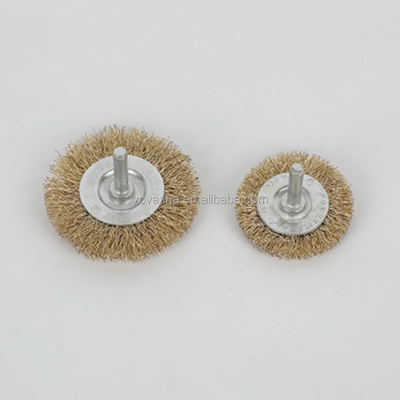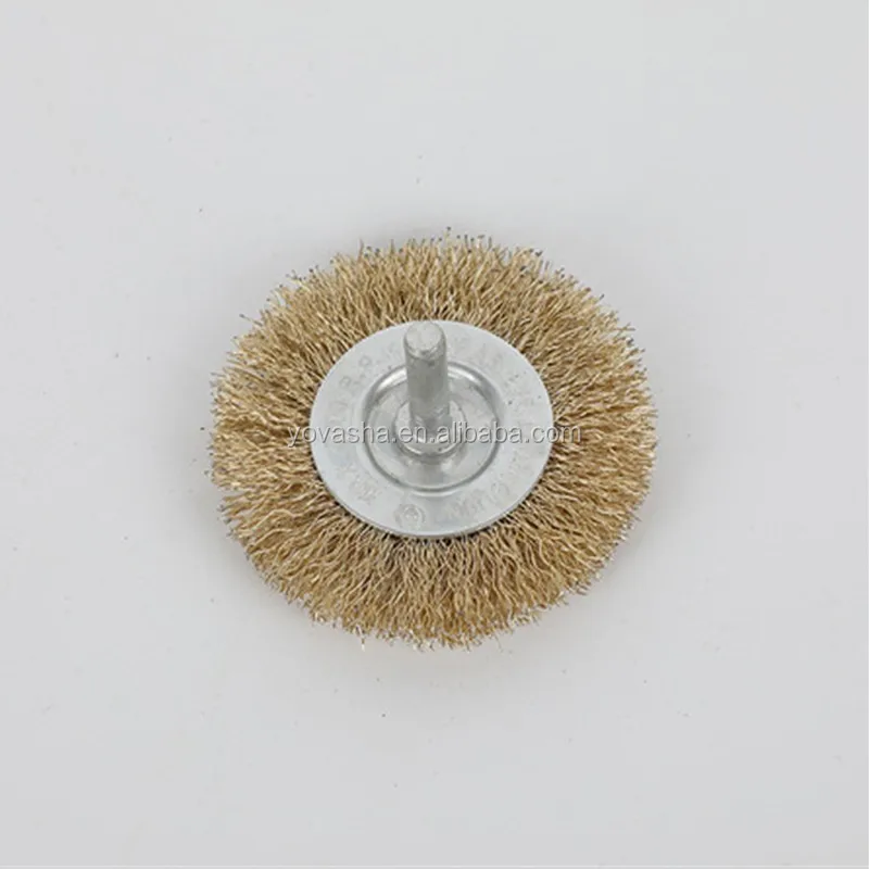 Shanghai Wholesale Flat Copper Coated Round Crimped Steel Wire Brush Wheel with 6mm Shaft for