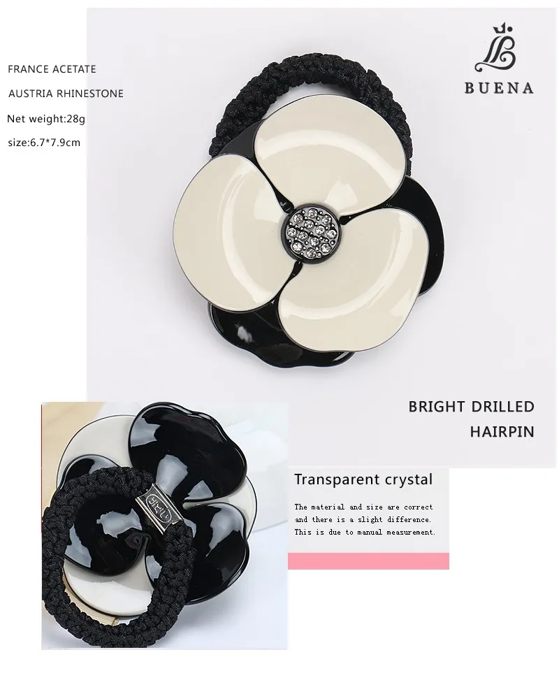 Product Name | Fashion Camellia Design Elastic Hair Band Multicolor Camellia Hair Ties Acetate Rhinestone Rubber Band for Women |