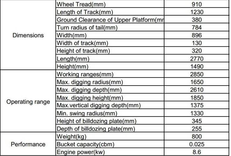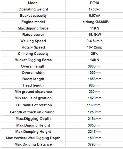 This mini excavator with beautiful appearance, high configuration , superior performance, low fuel consumption, wide operating range.