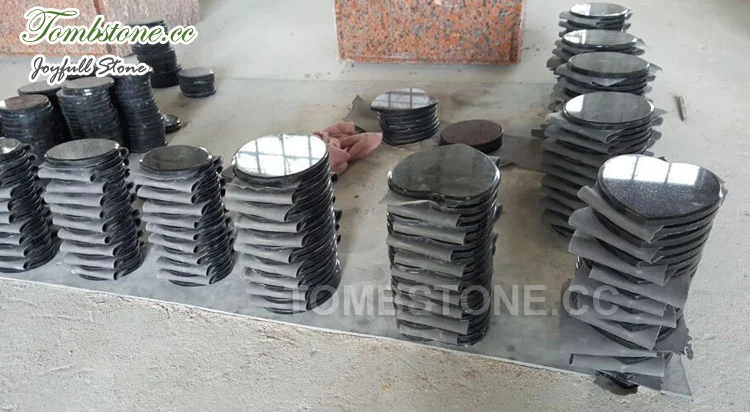 Stone memorial black granite plaques heart shape oval shape