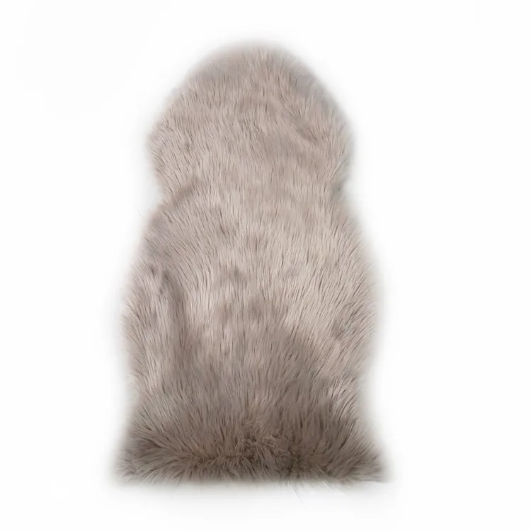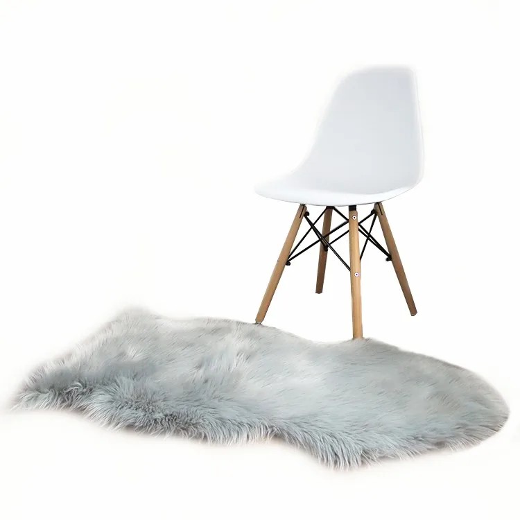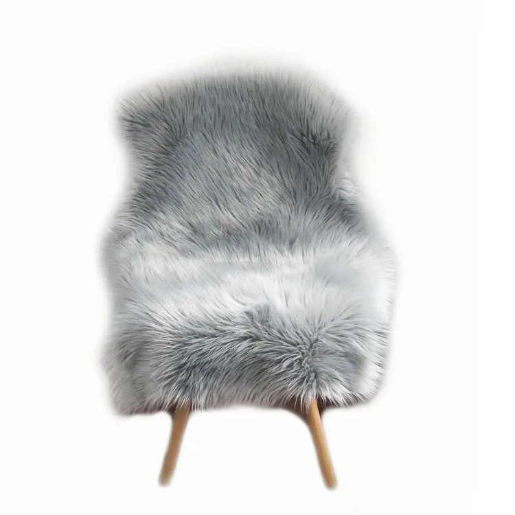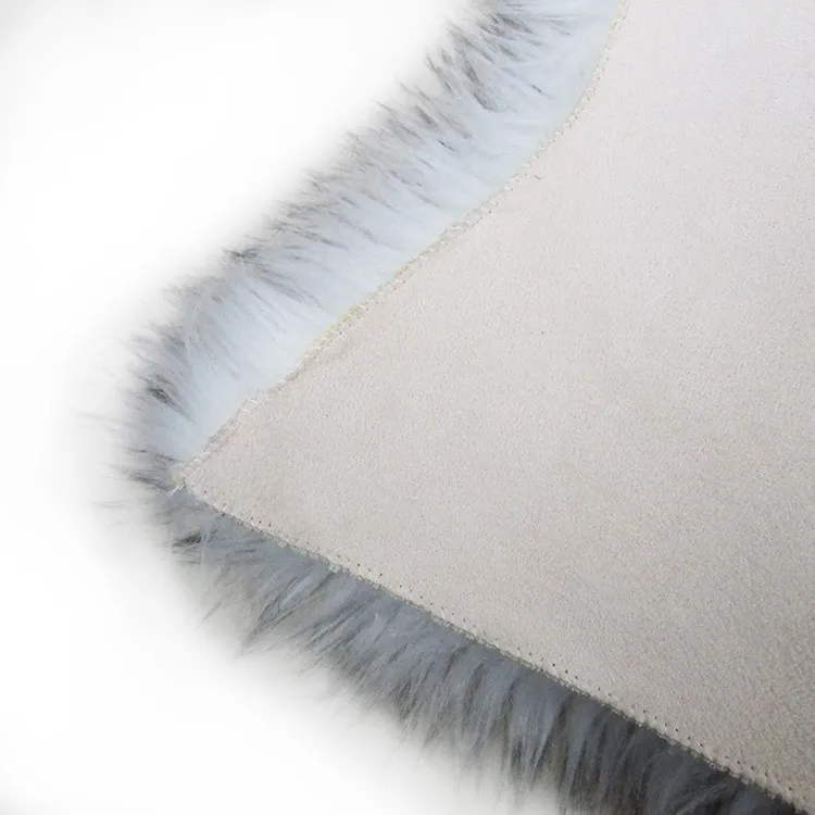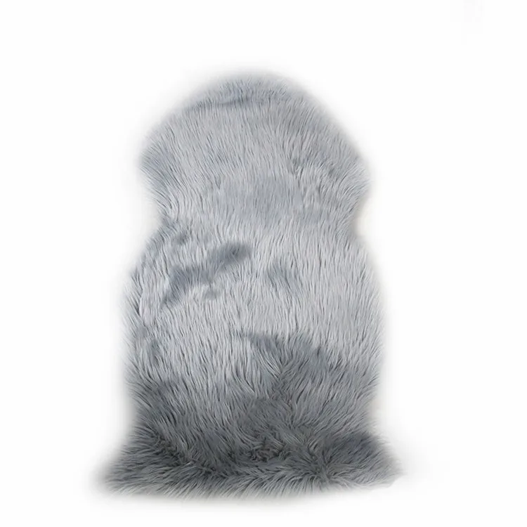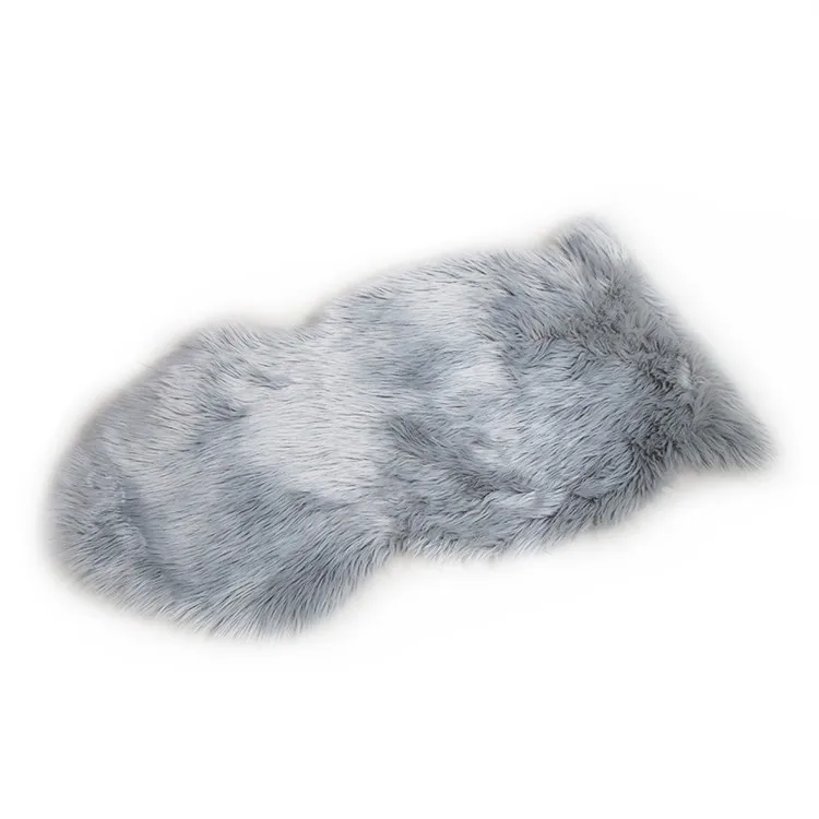 The gray faux sheepskin rug.