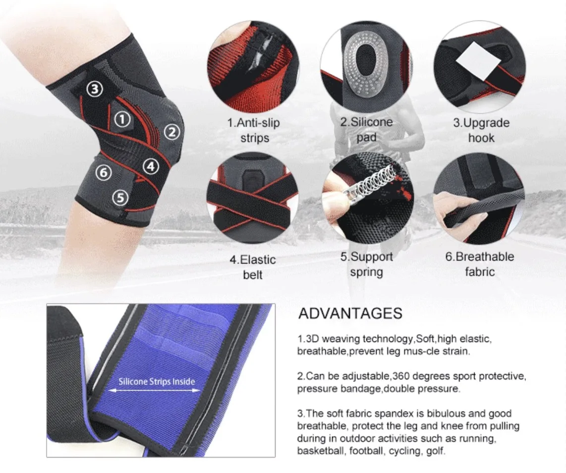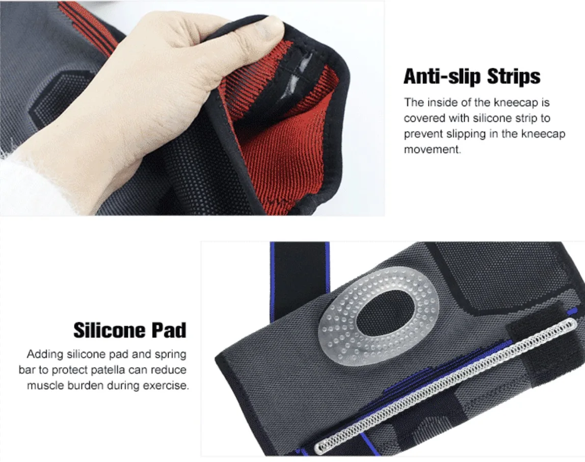 Product Name | Nylon Sports Compression Knee Brace Knee Protector Support Sleeve Pad with Spring Stay and Silicon Pad | ||||