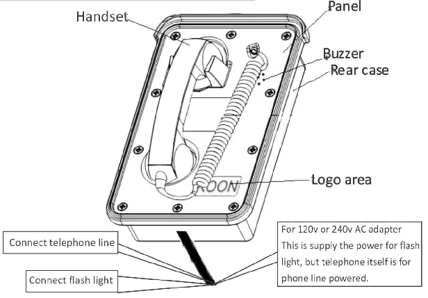 12. Optional 7 minute time out to release the line if the handset is left off hook. This function upon buyer's requirement).