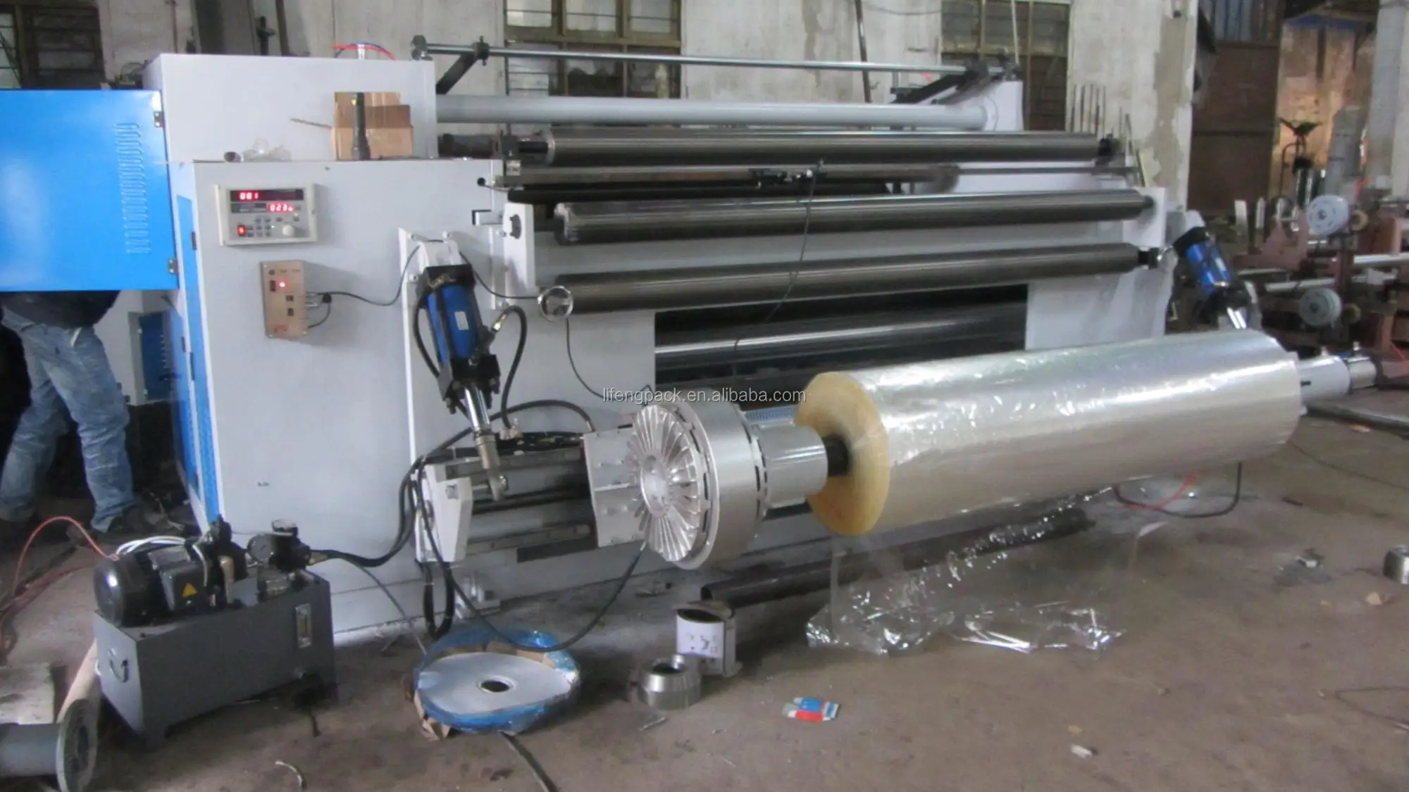 High Speed Computer Automatic aluminum foil cling film adhesive tape plotter paper roll double shaft rewinding machine price