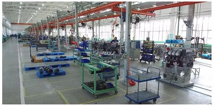 1015 Diesel engine designed by Deutz featuring advanced technology,these generator set engines have a power range from 208kw to 500kw.The generator engines adopt an inner oil-line and water channel structure that removes the need for external pipes that can lead to potential failtures and efficiency lossed ,The service life of the engine is about 15,000 working hours,The single cylinder ,single head structure make for easy maintenance,The special technology on the crankshaft,noise-dampening crankcase and accessory bracket allow the engine to operate at minmal noise levels(<96dB/m).The engine adopts an inlet heating device so as to maintain generation at temperatures as low as -35℃.