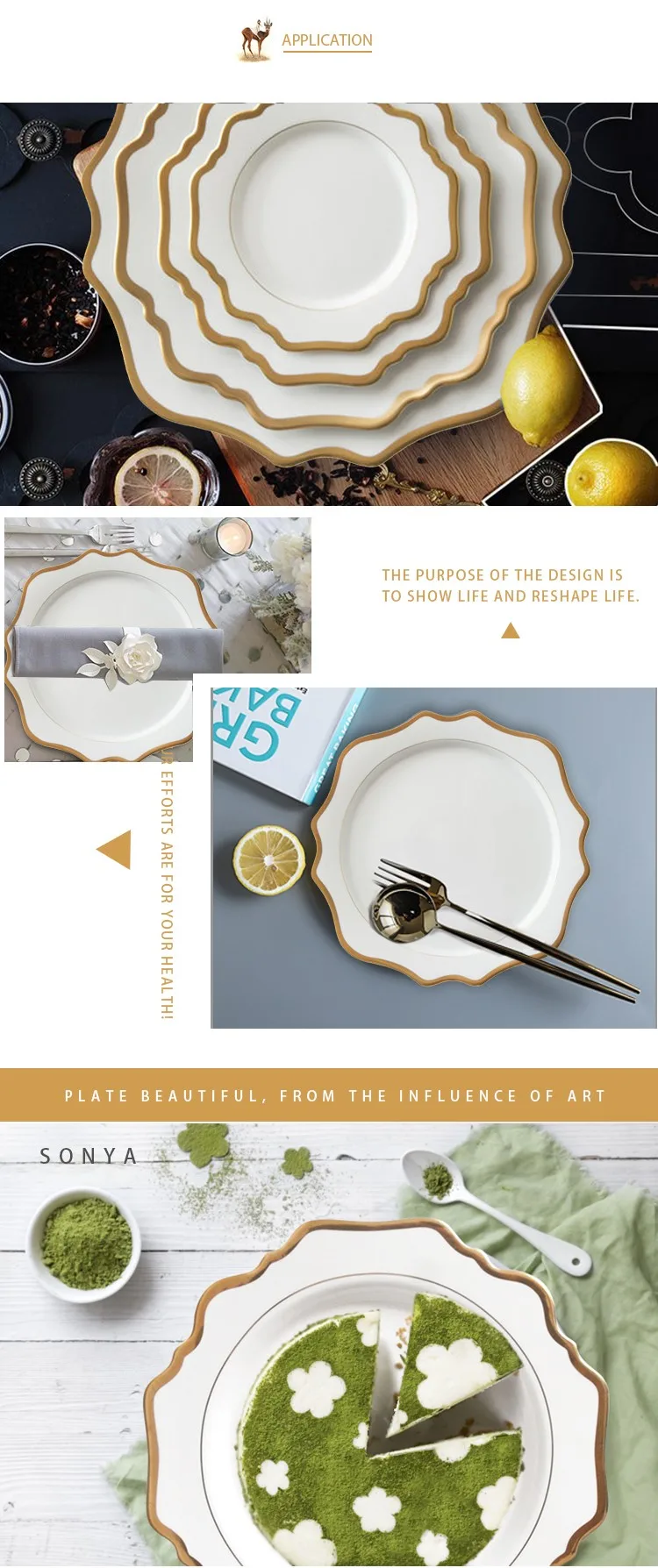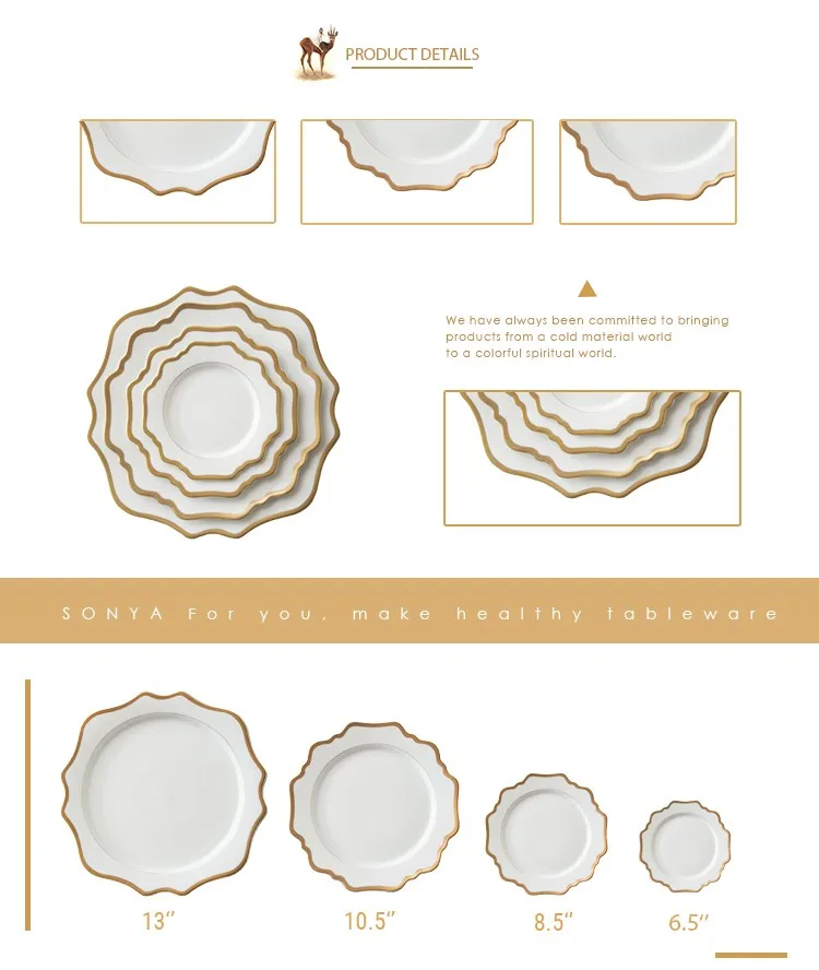 New plates have more exquisite rim processing, make the plates more fit for the Western dining style and the luxury wedding & events using.