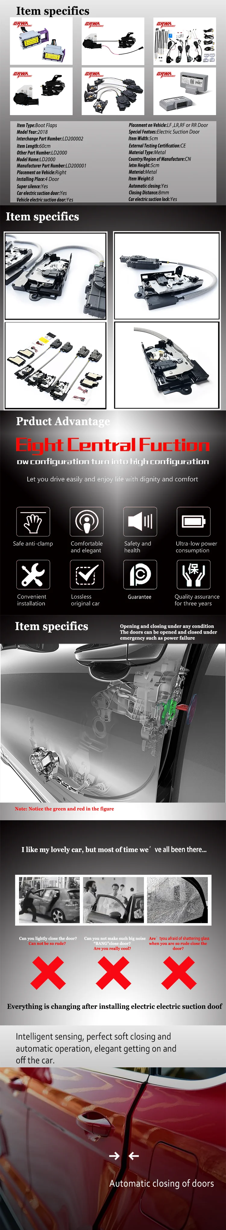 | Product Name: | Electric suction door | Installation: | Plug and play | Advantage: | Automatic closing |