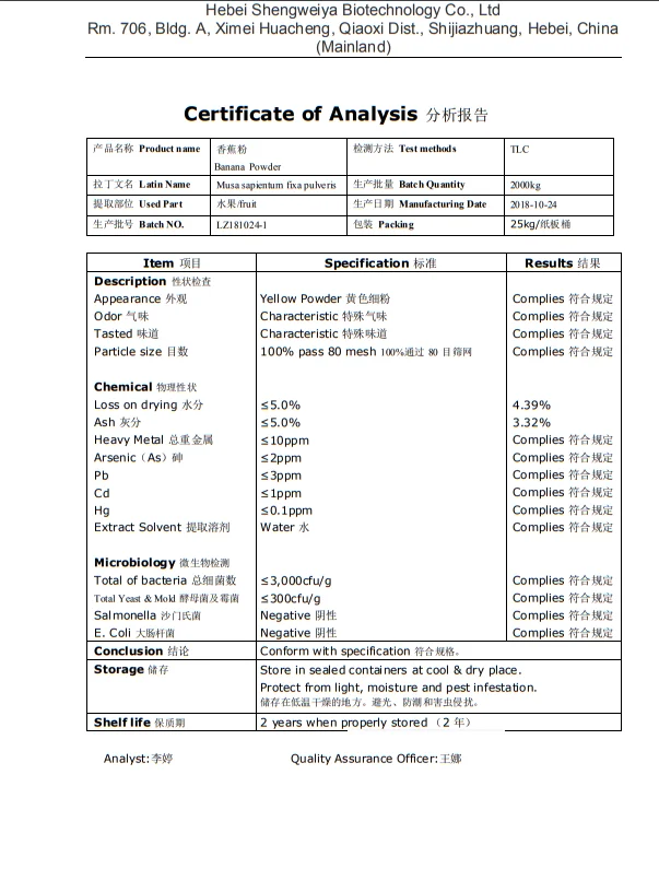 It effectively maintains the nutrients and fragrance of fresh Banana, immediately dissolved and convenient to use.