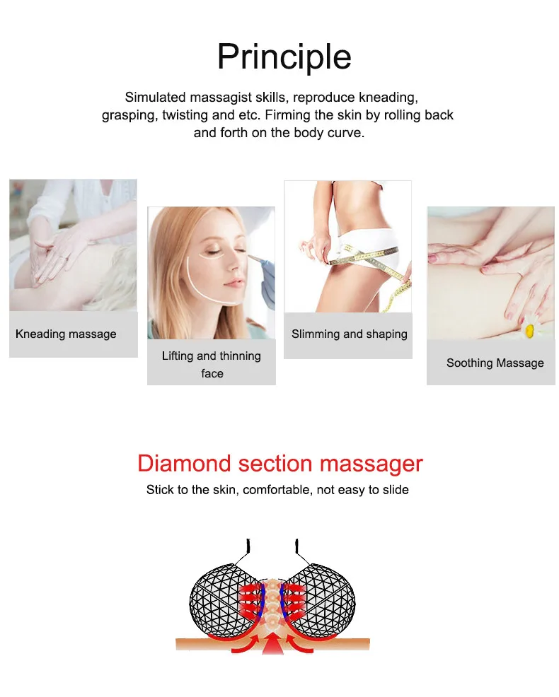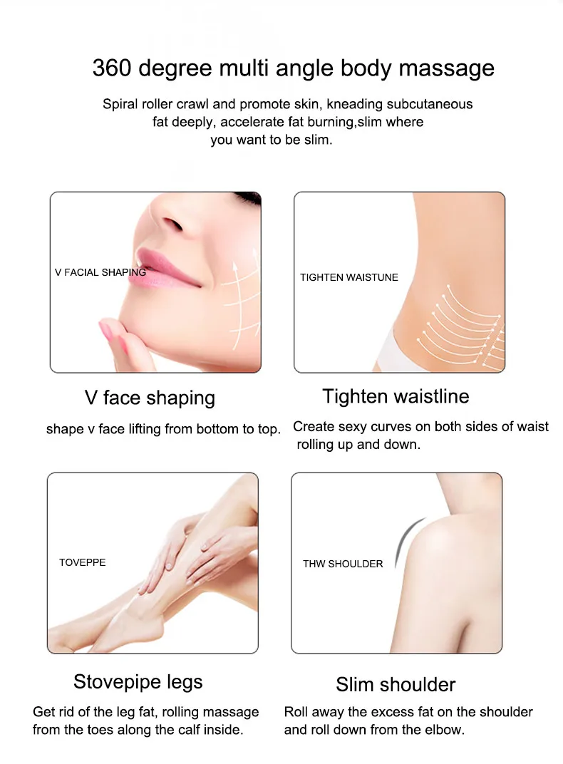 Advantage | 3D V structure with two roller, is applicable to any parts of the skin. Can be applied to sensitive skin and lose cellulite of the skin.Lower price than big beauty machine. Personal use,can make skin slim any time by oneself. Save cost,no need to pay much more money to Beautician. |