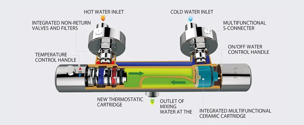 When the cold water suddenly interrupts, the thermostatic valve can automatically turn off the hot water in an instant.