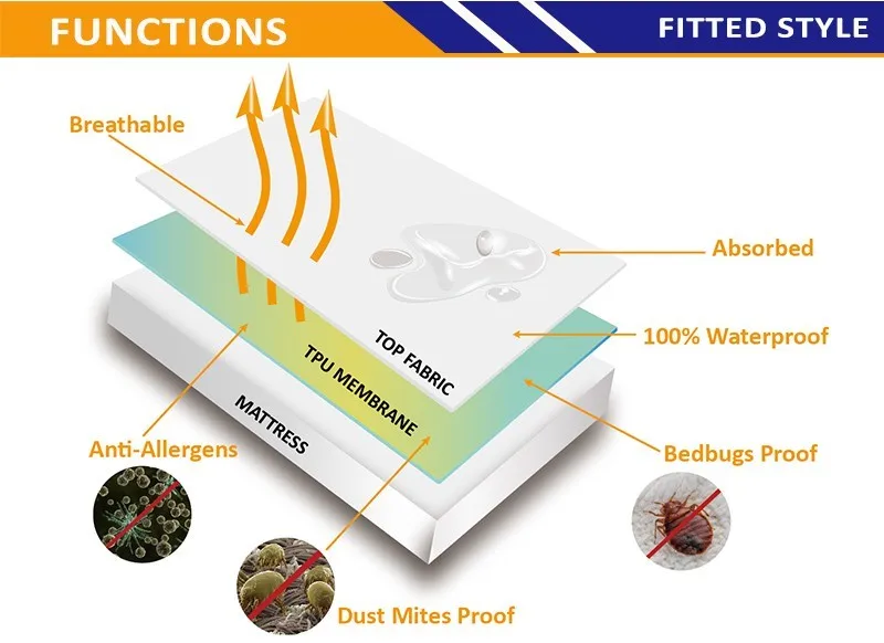 Bed Bugs Terry Waterproof Fabric Mattress Protector Cover Baby