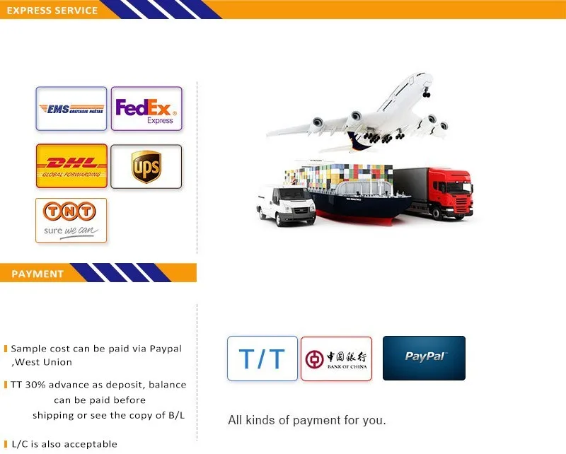 Answer:30% deposit after confirming the order,70%balance under the copy of B/L(we also accept the L/C at sight)