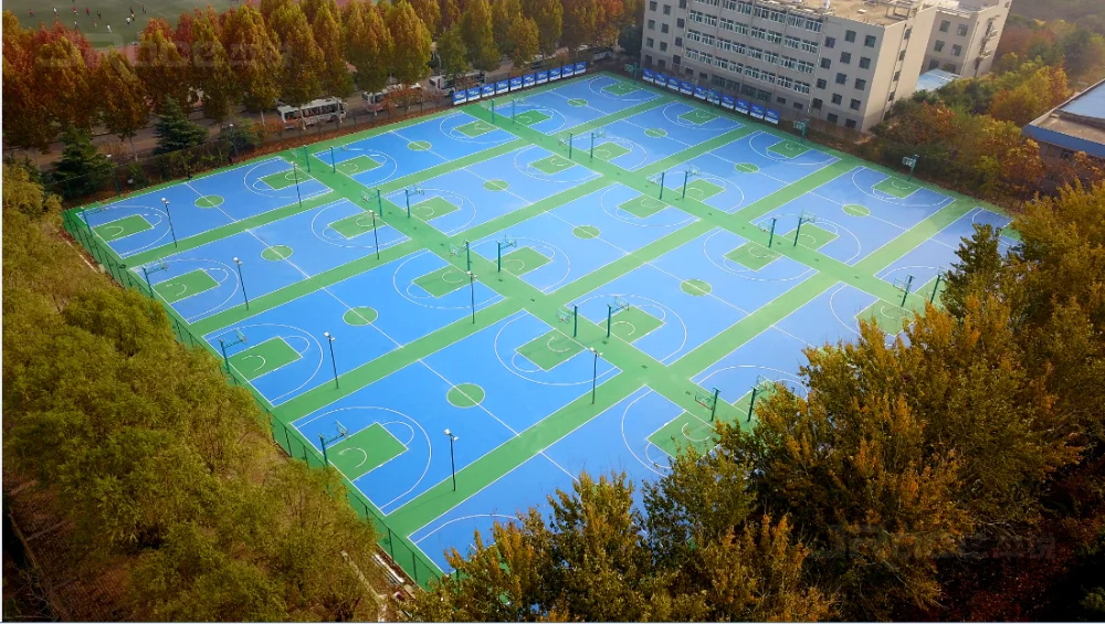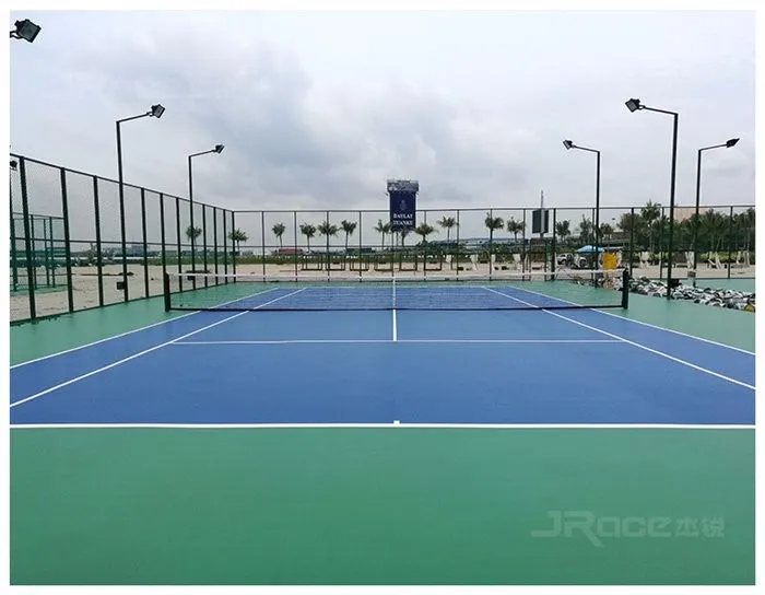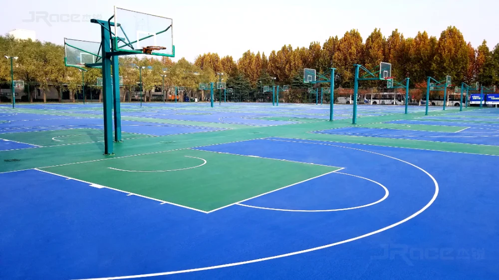 Jrace - Silicon PU sport court is kind of health-based and professional elastometic material system,which meets ergonomic and the need of sport physical properties,with hard top and elastic underlayer structure,it can be directly installed on the cement or asphalt base.