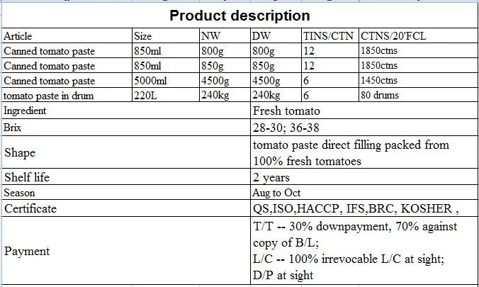 Best selling tomato paste 36/38 brix 70g 850g 4500g