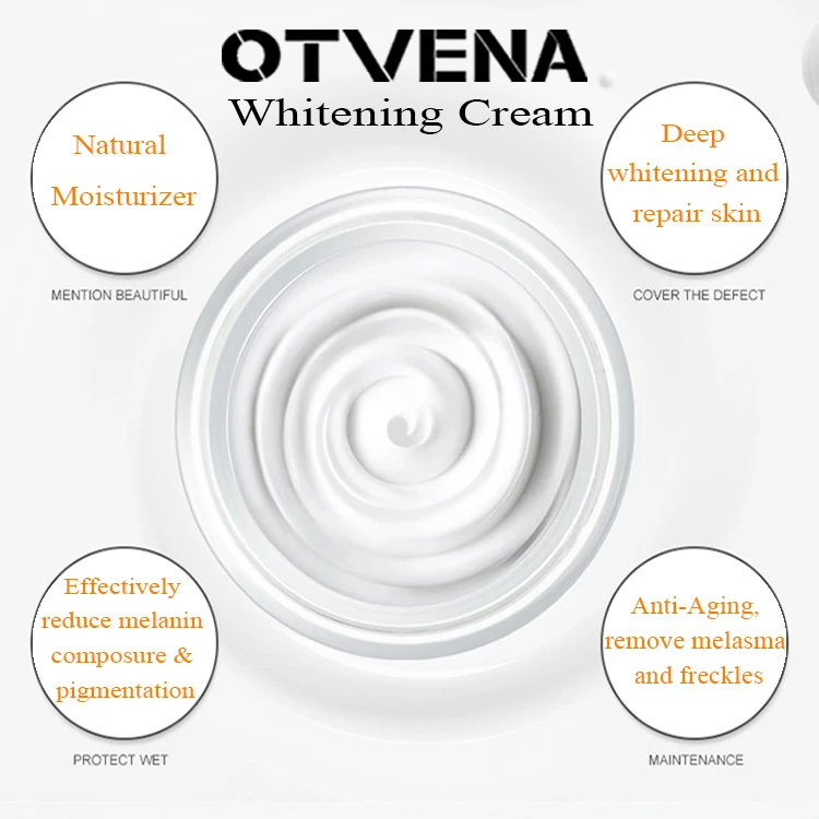 1.Whitening cream with rich and nutritious extraction to balance skin inside environment, effectively replenish whitening energy, maintain skin elasticity, tighten moisture, relieve fine wrinkles; form a moisturizing film on skin surface, lock up moisture and make skin glowing with moist and white looking.