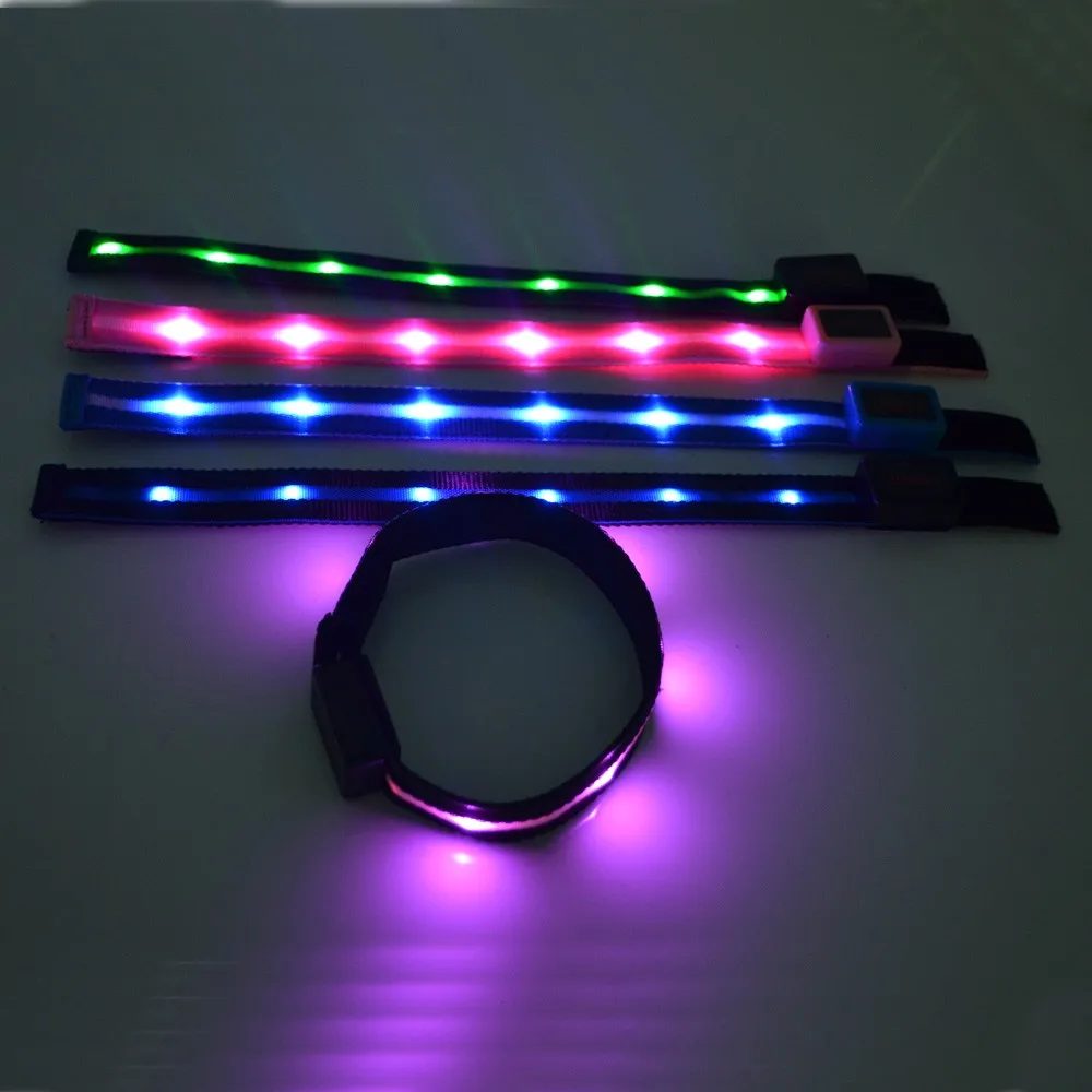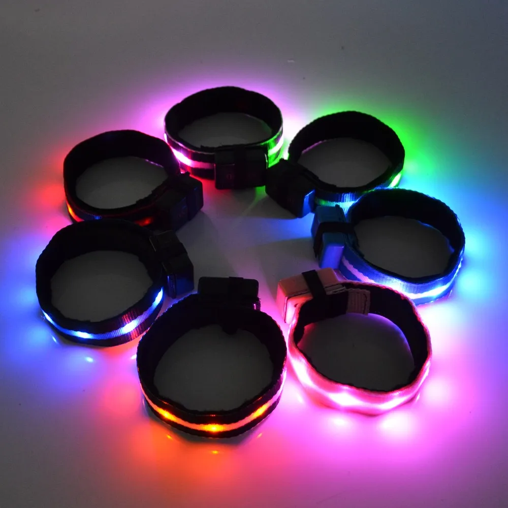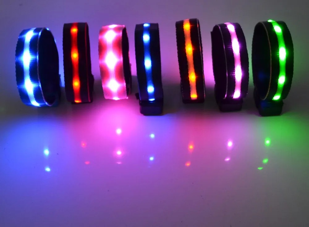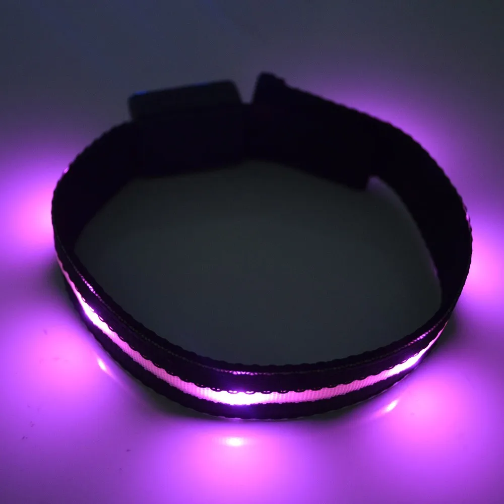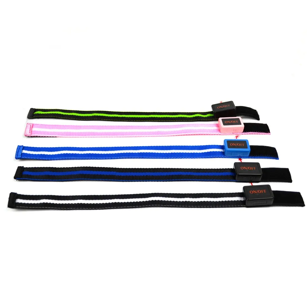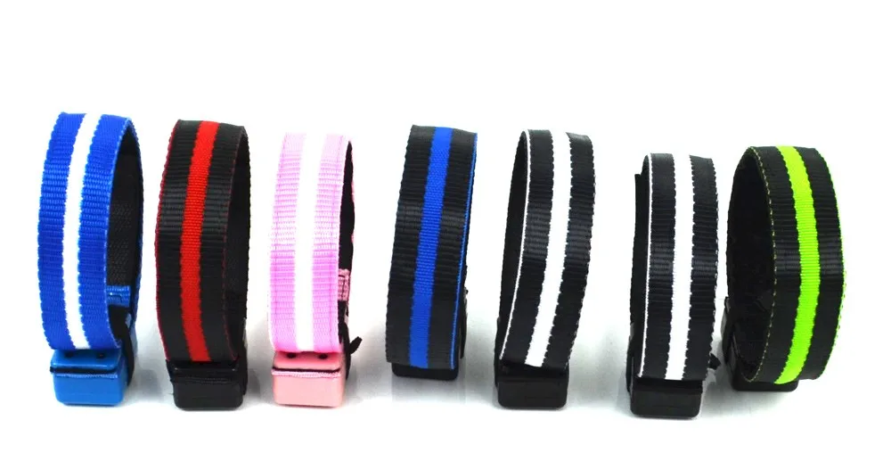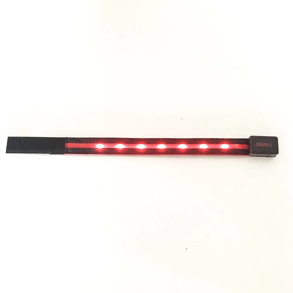 * Material: Polyester webbing, LEDs, zinc alloy buckle, ABS switch box, Velcro band