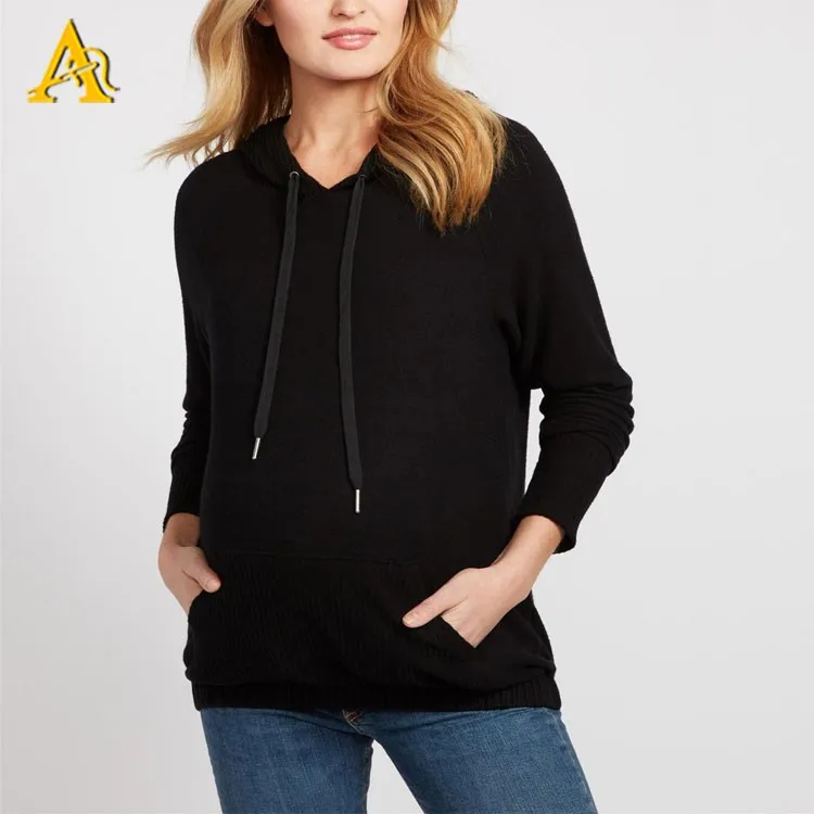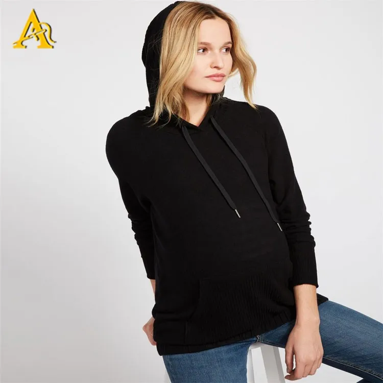 Wholesale Long Sleeve Plain Black Maternity Hoodies for Pregnant Women Clothes