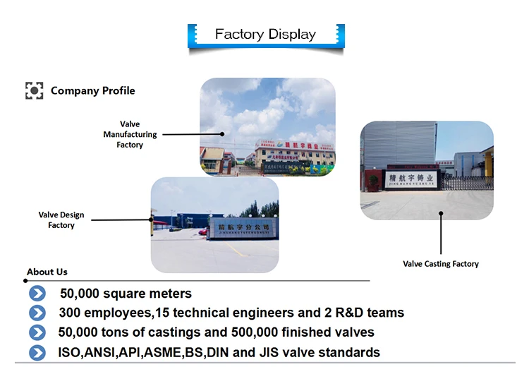 A: Three factories under Jhy company: foundry factory, valve design factory, and valve manufacturing factory.