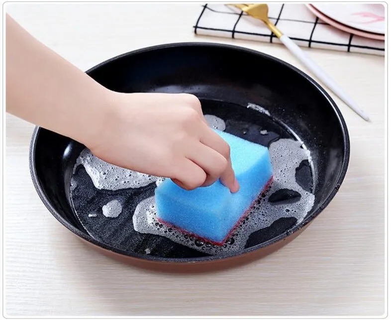 Sponge: High ability for water absorption; can store dishwashing liquid to make abundant foam; soft material is warm to the surface of the tableware; can change the shape, reach to the corner which the dirty stays.