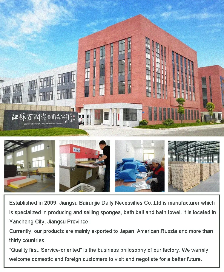 A: We are factory , manufacturing all kinds of sponges , wipes , bath ball, etc. Welcome to visit our factory!