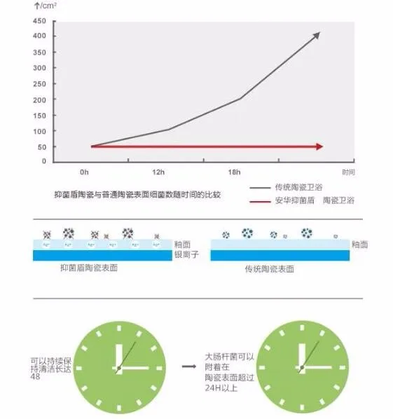 The glaze of toilet is coated on the surface of the glaze of the toilet with a nano-self-cleaning glaze and fired at a high temperature of 1268 °C. The glaze is smooth and smooth, and the dirt is extremely difficult to adhere. It is very easy to clean. Adding nano-valence silver ions to the glaze can effectively antibacterial, and the anti-kill rate of Staphylococcus aureus and Escherichia coli is over 95%, so the glazed surface has a good antibacterial effect and makes your bathroom space more healthy.