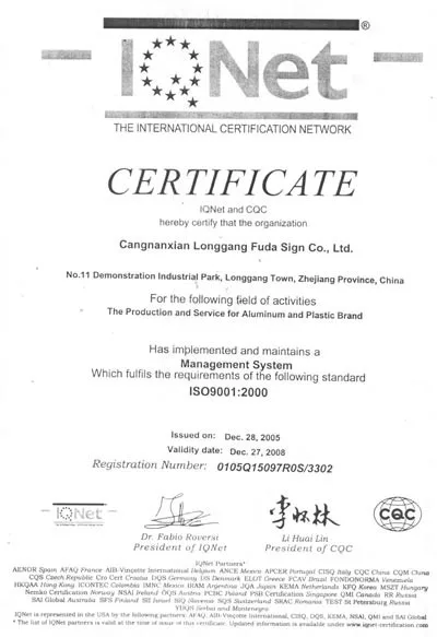 ISO9001 Enviromental Management System Certificate ISO9001