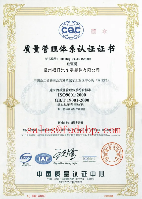 Certificate: ISO9001,ISO14000,ISO/TS16949:2009