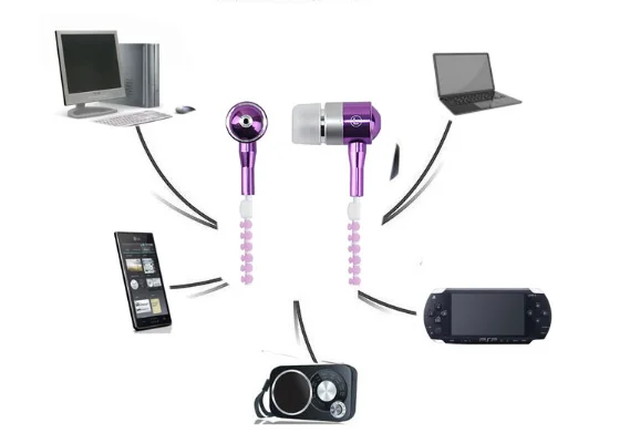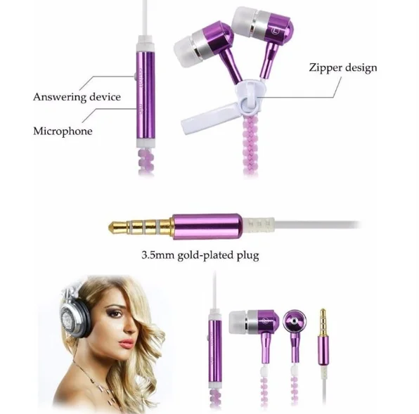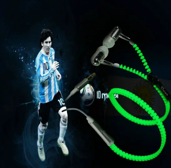 Christmast gift In-Ear Metal Zipper Earphone 3.5mm Wired with Microphone LED Light Luminous Glowing Headset