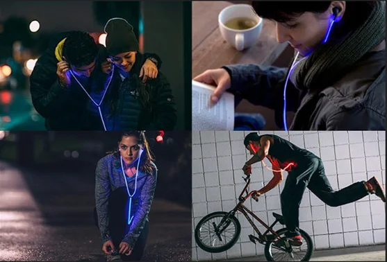 this earphone will glow without any Battery after it absorbs the light.